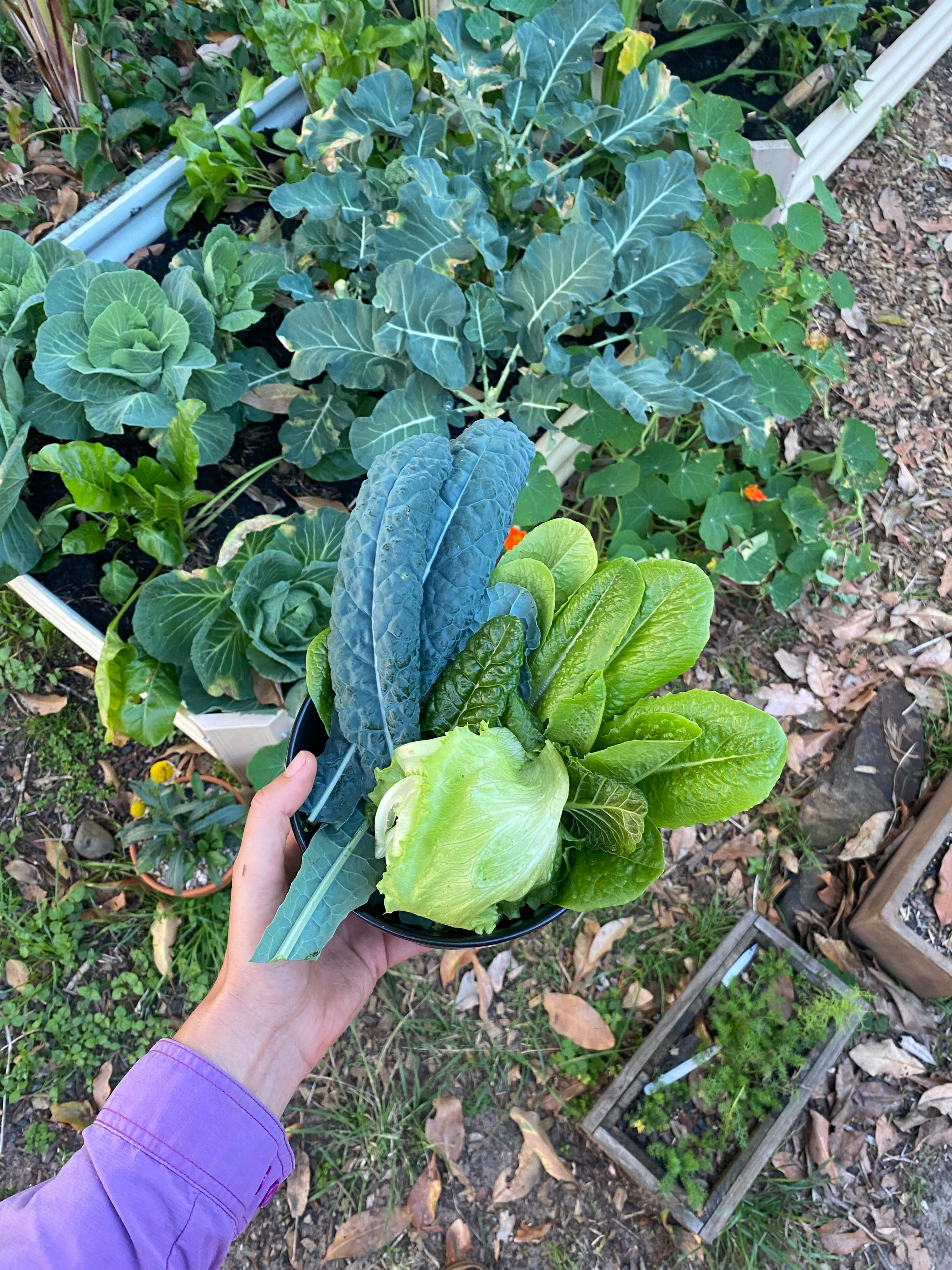 Growing each plant can be done in seperate pots, or planted all together in a little 1 x 1m veggie bed.