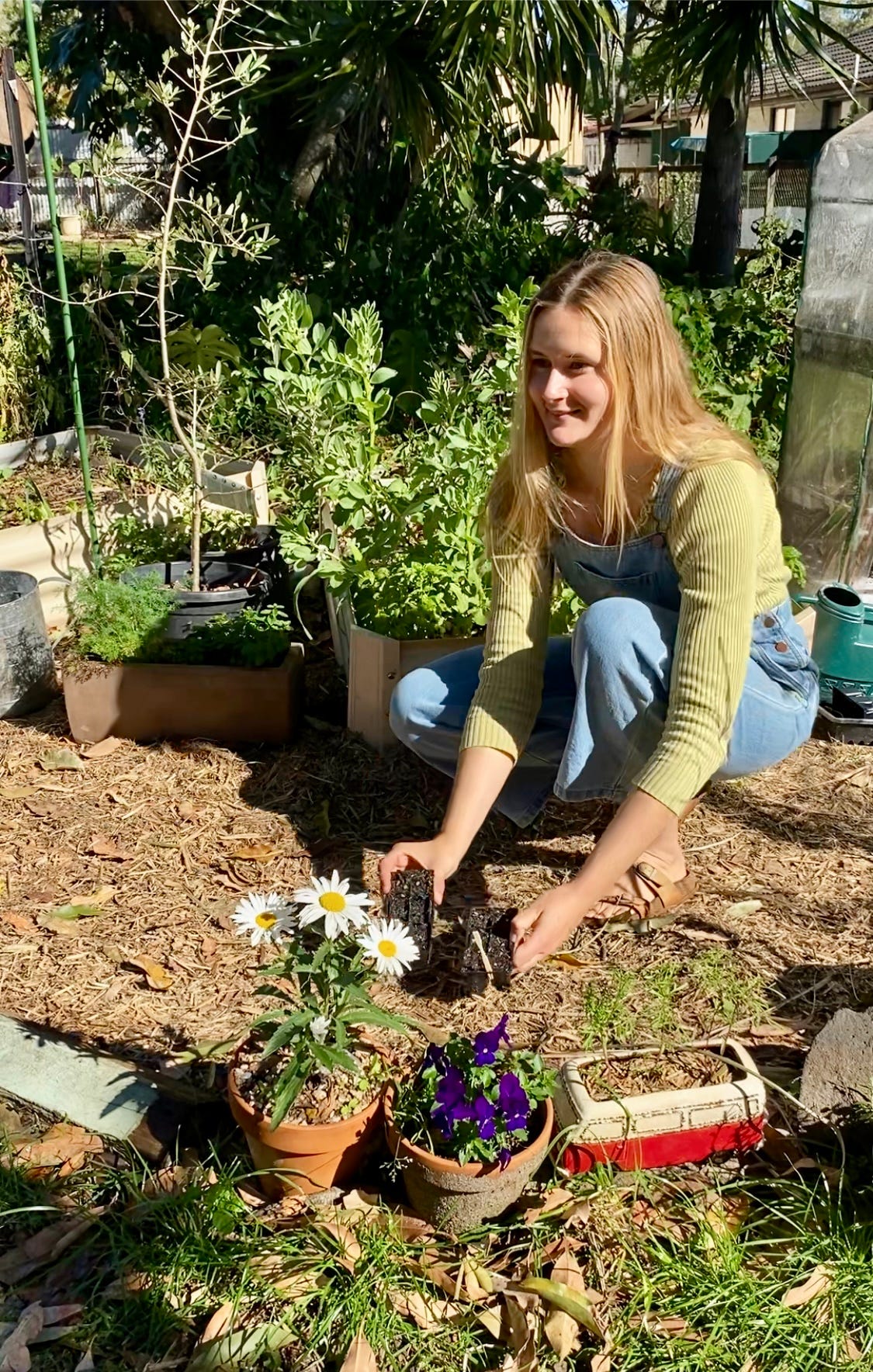 Regular deep watering is vital to keeping your plants happy. When watering, ensure that it is enough water that goes deep into the soil to the rootsystem. To test if the water is going deep enough, dig into the soil and look and feel if it is damp. If it starts to get hot where you are, I recommend watering twice a day!
